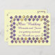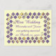 Lila und gelbe Diamanten bilden einen Rahmen um lila und gelbe Schmetterlinge, auf individuellen Hochzeitseinladungskarten. Der Text ist lila auf einem blassgelben Hintergrund geschrieben. Der Text kann auf den Vorlagen leicht angepasst werden. In diesem Geschäft sind passende Artikel vorhanden. Vielen Dank für Ihren Einkauf bei CherylsArt auf Zazzle.