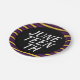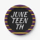 Jüngste Feiertage Teller mit einer Grenze von lila und gelben Streifen. Sie haben einen schwarzen Hintergrund in der Mitte, der Text ist weiß. Jugendzeitgestaltung Lila-gelbe Grenzpapiere | ©Melissa Patton - Designer