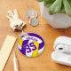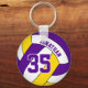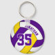 Dieser lila, gelbe und weiße Volleyball-Schlüsselanhänger verfügt über einen dreifarbigen Volleyball, auf dem Sie den Spielernamen und die Trikotnummer des Spielers - durch katz_d_zynes - anpassen können