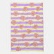 Chic lila und gelbe Streifen Blume Küchentuch mit stilvollen tropischen Blüten, whimsical botanischen Motiven und Retro Frühling Sommercharme für einen lebendigen naturlich inspiriert Akzent.