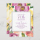 Schöne, farbenfrohe lila, gelbe und rosa Aquarell florale botanische 70. Geburtstagsfeier für Frauen. Text und Schriftart sind mit Zazzles Designwerkzeug vollständig anpassbar. Gestalten Sie Ihre Einladungen für jedes Alter und wie Sie sie gewollt haben. Kontaktieren Sie uns für Hilfe bei der Anpassung oder um passende Produkte anzufordern, um Ihre Party-Sammlung zu ergänzen.