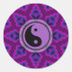 Lebhafte Lila Lilac- und Blues mit geometrischen Formen der Blume und einem lila Yin-Yang-Symbol