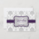 Eleganter grauer Damaske und Lila Geschenkzertifikat Eggplant. Fügen Sie Ihr eigenes Logo und Ihre persönlichen Daten hinzu. Geeignete Designanfrage angenommen. Kontaktieren Sie mich für weitere Informationen.