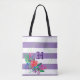 Mit diesem lila, breit gestreiften, blumengeschmückten Totbeutel, der in geometrischen Rahmen mit farbenfrohen, blumengeschmückten Wasserfarben eingeschlossen ist, wird Ihre Unterschriftensammlung abgerundet.