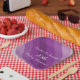 Lila gestreifte Teller, 25. Hochzeitstag Pappteller