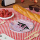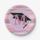 Lila gestrichelte Pink-Graduierungskappe Monogramm Pappteller