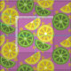 Ein leichter lila Stoff mit dem Muster von bunten, geschnitten und gequetscht Zitronen und Limetten . Stellen Sie sicher, dass Sie den Stoff auswählen, der am besten zu Ihrem Projekt passt. © ArianeC Illustrations-Alle Rechte vorbehalten