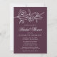 Elegante Blumendusche mit weißgestrichenen Blume und Blätter in der Nähe der Oberseite der Einladung mit Auberginen lila Hintergrund. Persönlich gestaltet sich die botanische Brautdusche mit dem Namen der Braut und den Duschdetails unten in klassisch weißer Schrift. Entworfen, um mit unserer Hochzeitskollektion Sketched Floral zu koordinieren.