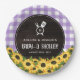 Lila Gingham & Sunflowers Rustic Baby-Q Dusche Pappteller