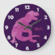 Lila Girls Watercolor Dinosaurier Personalisierte Große Wanduhr