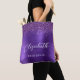Diese elegante moderne Brautjungfer-Tasche hat einen lila-farbenen falschen Glitter-Rahmen. Fügen Sie ihren Namen in weißer Handschrift-Schriftart und das Wort "Brautjungfer" oder einen anderen Titel in serifenloser Schrift auf einem lila-farbenen falschen gebürsteten Metallhintergrund hinzu.