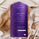 Die links Kulisse dieser eleganten, modernen Hochzeitseinladung besticht durch einen lila Imitat-Glitzer. Der anpassbare Text kombiniert weiße Handschrift und sans Serif-Schriftart auf einem lila Imitat gebürstet Metall Hintergrund. Die Rücksendeadresse wird auf der Außenhaut und auf der Rückseite der abnehmbaren RSVP-Karte auf einem lila, gebürsteten Metallhintergrund angezeigt.