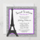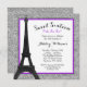 Ein glamouröses Paris Thema süße 16 Einladung. Lila und schwarz dargestellt. Mit einer Eiffelturmillustrierung mit einem Imitat silberner Glitzer Hintergrund. Mit diesem modernen Abend in der Pariser Party Einladung laden Sie Ihre Gäste stilvoll ein. Designs sind flache gedruckte Grafiken - NICHT AKTUELLER GLITZER. Grafiken von JW Illustrations bei MyGrafico