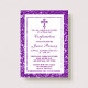 Lila Glitzer Kreuz Heilige Kommunion / Bestätigung Einladung
