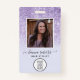ID-Abzeichen mit schicken Schriften, moderner Schrift und lila Glitzer-Effekt. Fügen Sie dem Abzeichen Ihr Logo und das Foto des Mitarbeiters hinzu.
