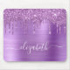 Maßgeschneidertes, elegantes und gürtelndes Mauspad mit lila Imitat Glitzer, das vor einem lila Imitat metallischer Folienhintergrund tropft. Monogram mit Ihrem Namen in einem stilvollen, trendigen weißen Skript mit Swashes.