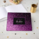 Ein Gästebuch für eine Graduation Party. Ein tiefer lila Imitat Glitzer Hintergrund. Personalisieren und fügen Sie einen Namen und Monogramm-Initialen hinzu. Fügen Sie Ihren eigenen Text auf den Rücken.