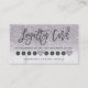 Eleganter lila Glitzer Glitzern mit weißem Marmor-Schrift Make-up Haar lila Herztreue Karte mit modernen handgeschriebenen Stil Pinsel Typografie auf Weiß, eine einfache, berufliche und minimalistische Karte, bieten 10 Behandlungen und Rabatt für Ihre Kunden.