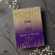 Eine lila, lavender handgeschriebene Skript-Kalligrafie moderne Typografie mit lila und goldenen Glitzer Tropfen ombre Luxus Hochzeit Save the Date Einladungen. Dieses elegante Monogramm-Design eignet sich ideal für ein trendiges und stilvolles Party-Event. Passen Sie dieses Design mit Ihrer Nachricht und personalisierten Informationen an. Alle Designs sind gedruckt.