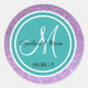 Lila Glitzer und Aquamarines Blue Wedding Monogram Runder Aufkleber