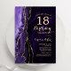 Lila und goldene Zeitung 18. Geburtstagsfeier Einladung. Elegantes modernes Design mit Aquarellfarben-marmorgeode Hintergrund, Imitate Glitzer Gold und Typografie Skript-Schriftart. Die trendige Einladungskarte eignet sich perfekt für eine stilvolle Damenfeier. Gedruckte Zazzle Einladungen oder Sofortdownload digitalen druckbaren Vorlage.