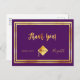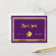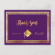 Ein Dankeschön für den Absolventen. Eine gürttlich lila Hintergrundfarbe und ein goldenes Imitat. Auf der Vorderseite ein handgeschriebenes Stil Skript und den Text: Danke! Absolvent, Jahr und Graduiertencap, Hut. Zurück: Personalisieren Sie Ihre Dankeschön Notiz und Name. Keine Hintergrundfarbe.