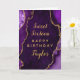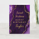 Diese elegante und glamouröse Geburtstagskarte kann mit einem Namen oder Titel wie Tochter, Enkelin, Nichte, Freund etc. personalisiert werden. Das Design ist mit einem lila Hintergrund aus agatfarbenem Marmor und Imitaten mit Akzenten aus vergoldetem Glitzer ausgestattet. Der Text kombiniert handgeschriebene Skripte mit modernen serifenlosen Schriftart für ein elegantes und raffiniertes Aussehen.