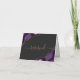 Diese elegante, moderne Hochzeitstisch-Platzkarte mit Sitzgelegenheiten bietet ein lila Aquarellbild, das mit goldenen Imitaten in den gegenüberliegenden Ecken bestickt wird. Das Wort "reserviert" erscheint in einem goldfarbenen Handschriftenskript mit Swashes vor und nach einem schwarzen Hintergrund auf beiden Seiten der Karte.