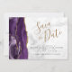 Lila Gold Agate Gray Marble Save the Date Karte