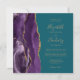 Lila Gold Agate Moderne Hochzeit auf dem Aquamarin Einladung