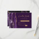 Der links Rand dieser eleganten, modernen Hochzeitsschutzkarte RSVP verfügt über einen lila Aquarellrahmen mit vergoldetem Imitat-Glitzer. Der Titel "Kindly Reply" erscheint im Skript, mit anpassbarem Text unten in goldfarbenen Sans Serif Schriftart auf einem tiefen lila Hintergrund. Auf der Rückseite ist ein lila und goldenes Design zu sehen.