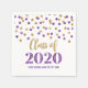 Abschluss-Servietten für die Klasse 2020 mit glamourösem Gold und lila Konfetti-Muster.