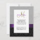 Elegante Eleganz vermittelt dieses schöne Hochzeitsempfangsdesign. Ein grau-schwarz auf schwarzem Damast-Muster dient als Hintergrund für einen Foto-Effekt des Metallic Gold Initial M und einer lila Satin-Band und Diamantfibel ALL PRINTED auf einer FLAT-KARTE. Ein idealer Weg, um Ihre Gäste zu Ihrem Hochzeitsempfang einzuladen. Modernes, aber klassisches Damast-Muster mit einem Design, das es Ihnen ermöglicht, die Vorderseite mit Ihren Namen oder das Wort "Empfang" zu personalisieren, und die Rückseite ist frei, Ihren individuellen Hochzeitsempfangseinladungstext hinzuzufügen. Hochzeit Einladung ist Set für Monogramm Initial "M". Für weitere Briefe wenden Sie sich bitte an Designer unter luxuryweddinginvitations@gmail.com. Entwurf des Layouts von Elke Clarke©. lizenzierte Grafiken. Wählen Sie auch aus einer Vielzahl von Schriftart und schönen Papieren, um Ihre Hochzeitseinladungen PERFECT!