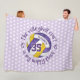 Diese niedliche, mit einem Volleyballthema versehene Fleecedecke für Mädchen zeigt das realistische Bild eines Volleyballs mit lila, goldfarbenen und weißen Paneelen, auf denen man den Namen und die Jersey-Nummer des Athleten anpassen kann. Um den Volleyball herum steht der Text: "Der Volleyballplatz ist mein glücklicher Ort" in Blau in einem lustigen und lässigen, handgeschriebenen Schriftart mit zwei handgezeichneten Konturen: dem Volleyball. Die lila und goldenen Paneele von yball sind mit einer künstlerischen, femininen digitalen Textur vermischt - ein winziges Volleyballpunktmuster überdeckt einen anpassbaren, blassen lila Hintergrund - katz_d_zynes