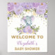 Lila Gold Floral Elephant Baby Dusche Willkommen Poster