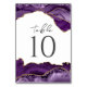 Elegante Lila Agate Wedding Tischnummer Cards. Imitate Gold Glitzer Grafiken. Skript-Schriftart-Highlights mit leicht lesbaren Serifennamen Schriftart. Leicht an Ihre Hochzeitsbedürfnisse anzupassen. Personalisierte Hochzeitskarten.