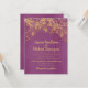 Elegante Hochzeitseinladung mit wunderschönen goldfarbenen Saitenlichtern und glitzerndem Buch auf einem strahlenden lila Hintergrund.
