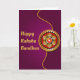 Schick Raksha Bandhan Grüße mit einem Rakhi (Armband) in lila und gold.