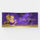 Lila und goldenes Baby-Duschbanner mit bezauberndem Babymädchen, das einen lila Tutu trägt und Perlenketten auf einem eleganten Glitzer mit goldenen Schuhen mit hoher Ferse auf einem lila und goldenen Hintergrund sitzt. Sie können mit Ihrem Text personalisieren. Dies ist ein gedrucktes Design ohne echten Glitzer, Satin, Perlen, etc.