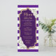 Menükarte. Klassisches lila Golddesign mit Imitaten Glitzer Gold. Mit Streifen und weißen Rosen. Ideal für ein elegantes Party.
