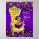Prinzessin Babydusche Begrüßungsschild mit niedlicher afrikanisch-amerikanischer Prinzessin-Babyfrau mit einem niedlichen lila Tutu und Perlen und Goldstuhl auf elegantem lila und goldenen Hintergrund. Dieses Babydusche-Begrüßungsschild lässt sich einfach durch das Hinzufügen eines Textes für Ihre Veranstaltung anpassen.