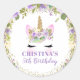 Lila Gold Unicorn Gastgeschenk Klassischer Rundaufkleber