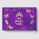 Feiern Sie Ihre Quinceañera im Stil mit diesem modernen Lila Gold Schmetterling Mis Quince años Quinceñera Design. Mit einem Seitenrand von goldenen Schmetterlingen, die herumfliegen, und einem Raum für maßgeschneiderten Text. Die Rückseite zeigt eine einzigartige Tiara-Krone oben und goldene Schmetterlinge fliegen zusammen mit Raum für personalisierten Text "mis quince años". Dieses Design ist perfekt für ein 15. Geburtstag Quinceañera Feier. Sie können alle Details an Ihren speziellen Tag anpassen. Sehen Sie sich die komplette passende Kollektion an!
