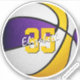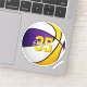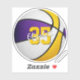 Dieser Basketballaufkleber zeigt das realistische Bild eines Basketballs mit abwechselnden lila, weißen und goldfarbenen Panels, auf denen Sie den Namen und die Trikotnummer des Athleten personalisieren können - mit katz_d_zynes