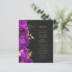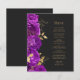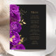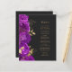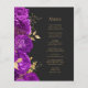 Dieses elegante, moderne Hochzeitsmenü besticht durch eine Mischung aus violetten Blumen und vergoldeten Blätter aus Imitat. Passen Sie den goldfarbenen kursiven Text auf einem schwarzen Hintergrund mit dunklem Schiefer an. Die Rückseite der Speisekarte ist schwarz, schwarz, schwarz und schwarz.