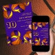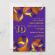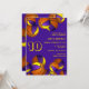 Diese Basketball-Party Einladung für einen Geburtstag oder ein Team-Party bietet Basketballhaufen oben und unten an der Vorderseite und einen Single-Haufen, der die Rückseite der Einladung bedeckt - jeder Basketball hat zwei farbige Panels, ein lila und ein Gold - die Party-Details auf einem lila Hintergrund - von katz_d_zynes