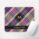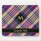 Lila, goldgelbes und blaues Tartan-Design. Nahtloses Muster. Benutzerdefinierter Text und Monogramm.