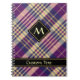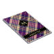 Lila, goldgelbes und blaues Tartan-Design. Nahtloses Muster. Benutzerdefinierter Text und Monogramm.