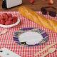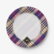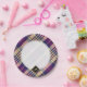 Lila, goldgelbes und blaues Tartan-Design. Nahtloses Muster. Benutzerdefiniertes Monogramm.