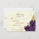 Schöne, individuell anpassbare botanische Rsvp-Karte schöne königliche violette Blumen mit goldenen Blätter auf elegantem Marmorboden Die Einzelheiten des Glitzer werden simuliert